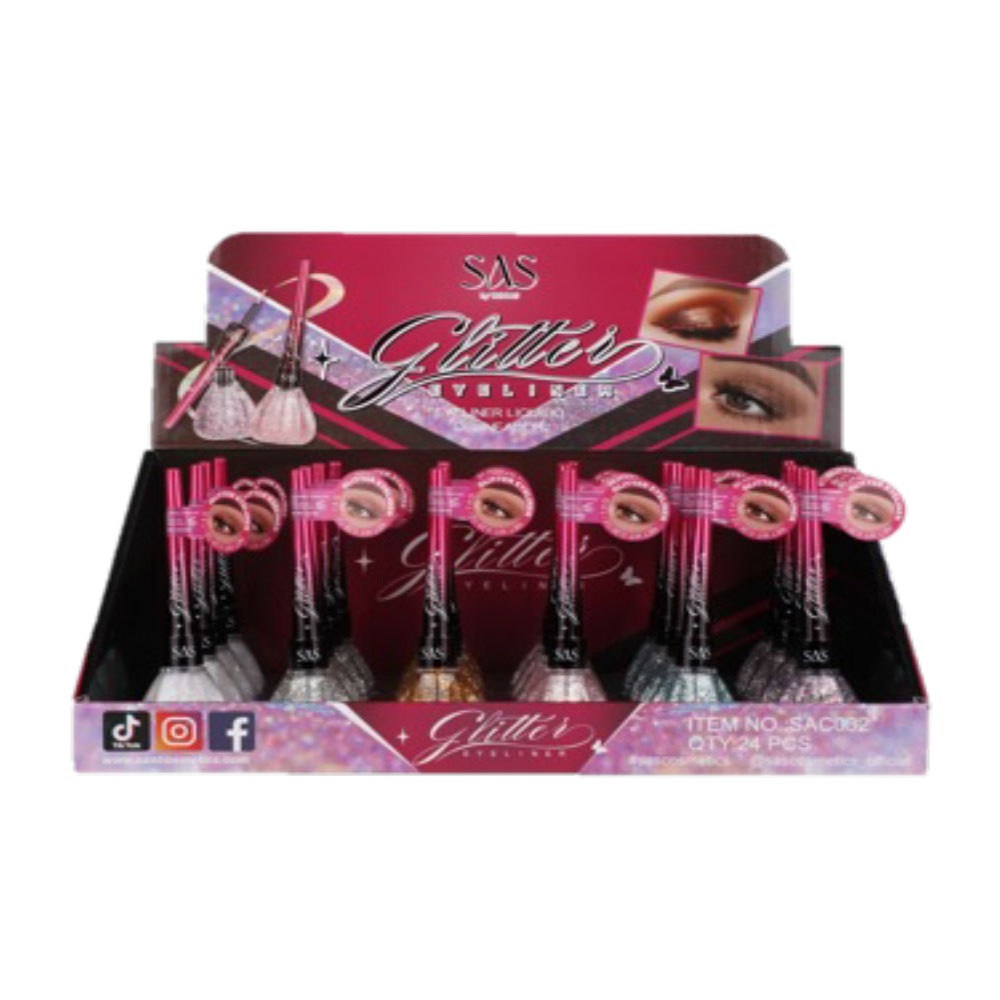 Delineador glitter brilloso 6 tonos dif / Blanco, plata, ocre, rosa, azul, morado
